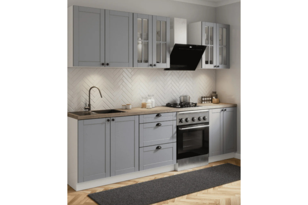 Postaw na minimalistyczny design i ponadczasową elegancję. System mebli kuchennych Linea to połączenie matowych frontów MDF w kolorze szarym z czystą bielą korpusów. To idealna propozycja dla osób, które szukają mebli trwałych, estetycznych i funkcjonalnych, które nadadzą wnętrzu nowoczesny, uporządkowany wygląd.