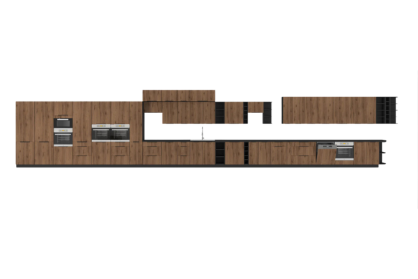 Postaw na ponadczasowe połączenie natury z industrialnym charakterem. Zestaw mebli kuchennych Monza w dekorze Orzech Okapi to idealna propozycja dla osób szukających ciepłego, drewnianego wykończenia przełamanego nowoczesną, czarną linią korpusów. To kuchnia, która przyciąga wzrok i nadaje wnętrzu wyjątkowego klimatu.