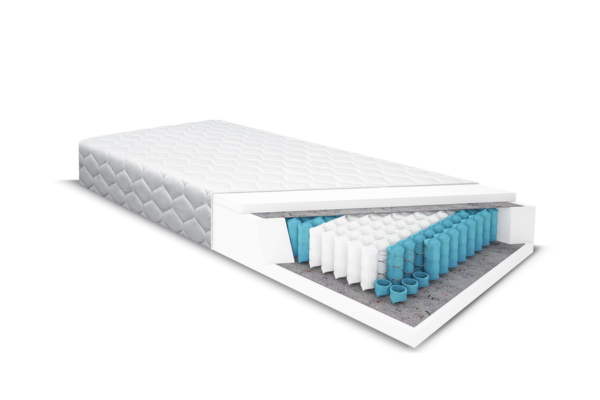 System Pocket (270 sprężyn/m²): Każda sprężyna umieszczona jest w osobnej kieszonce. Pracują one niezależnie, co zapewnia precyzyjne podparcie w każdym punkcie.