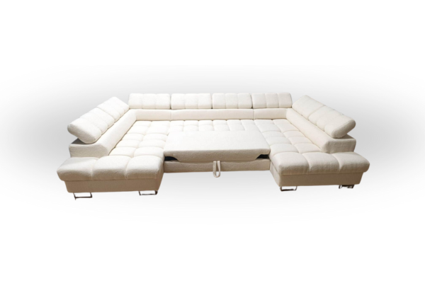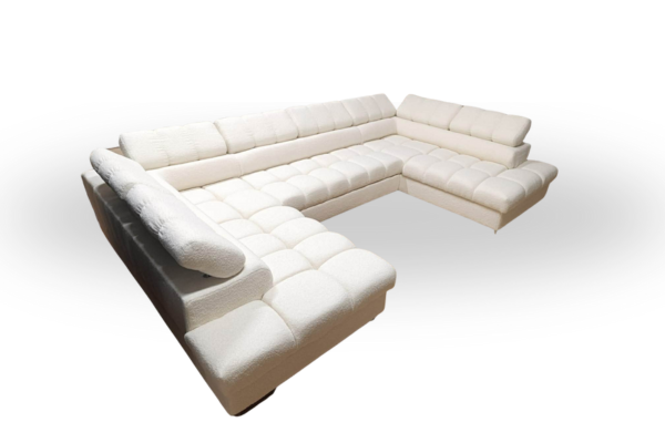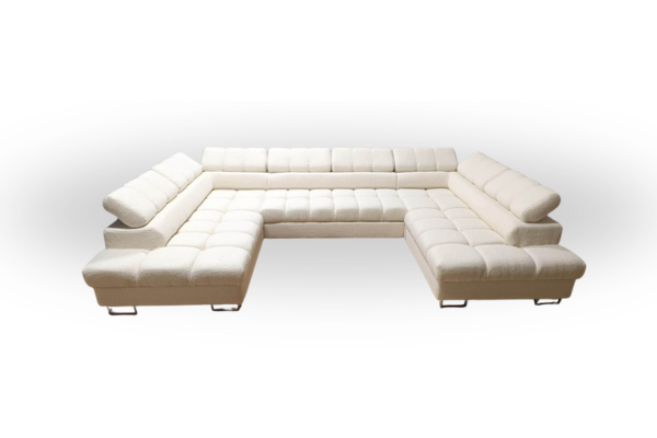 Narożnik Dubaj U to propozycja dla osób, które poszukują mebla o wyrazistym charakterze i ogromnej powierzchni użytkowej. Dzięki swojej bryle w kształcie litery U, narożnik staje się naturalnym centrum życia domowego, łącząc minimalistyczną formę z luksusowym wykończeniem w postaci głębokich, kwadratowych pikowań na siedzisku.