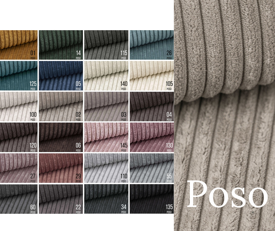 Jeśli nie ma w ofercie tkaniny, która Cię interesuje, masz możliwość zamówienia narożnika w innej wybranej przez Ciebie tkaninie po wcześniejszym ustaleniu ze sklepem pod numerem telefonu: 725 135 306 oraz dopisaniu tego w wiadomości do sprzedającego. Tkanina w drugiej grupie cenowej za dopłatami.
