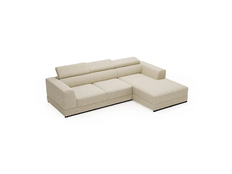 Dla Twojej wygody wyposażyliśmy narożnik również w regulowane zagłówki, które stanowią komfortowe podparcie głowy i karku. Jeśli planujesz umieścić narożnik w centralnym punkcie salonu, składane zagłówki są bardzo korzystnym rozwiązaniem, ponieważ mebel może być wizualnie niższy i nie zaburzać aranżacji wnętrza.